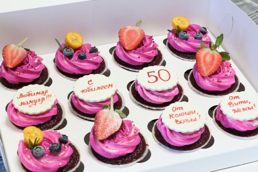 Симпатичные капкейки на юбилей любимой мамуле.