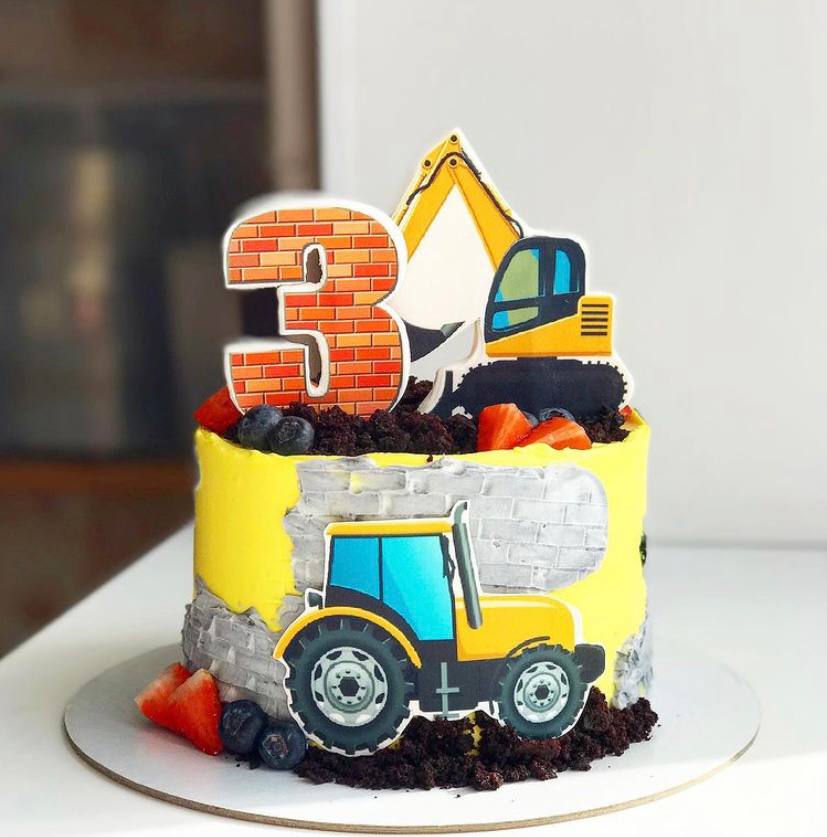 Этот яркий и аппетитный торт выполнен в виде жёлтого трактора, который символизирует трудолюбие и помощь в сельском хозяйстве.
